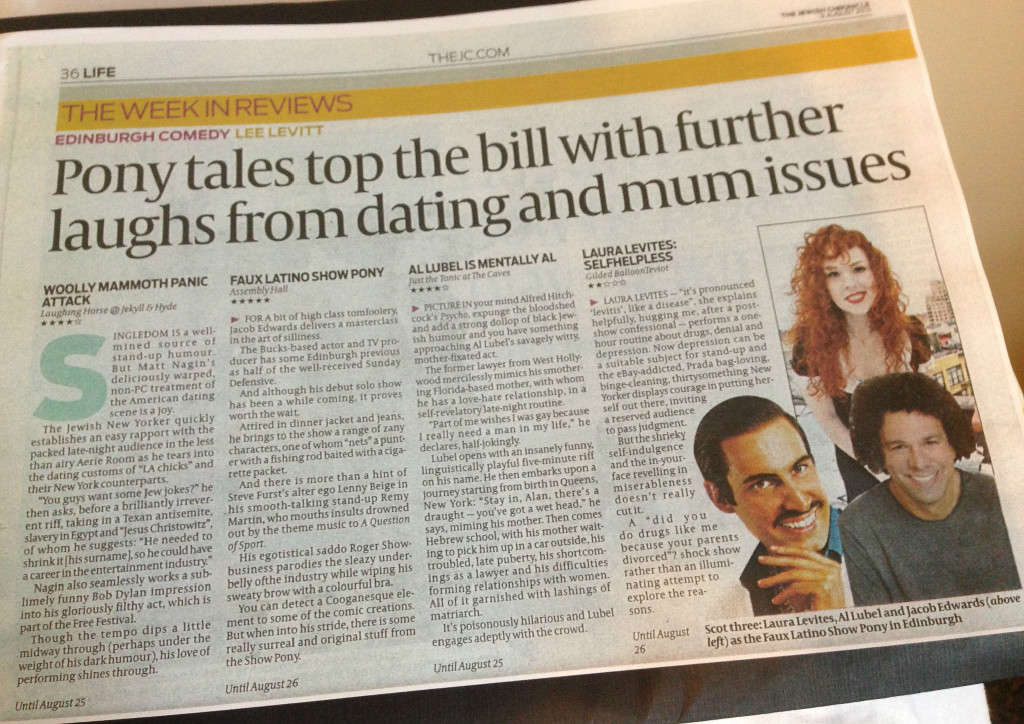 Lee Levitt of The Jewish Chronicle gave the show four stars and called it “brilliantly irreverent” and “sublimely funny.” Read the full review here.